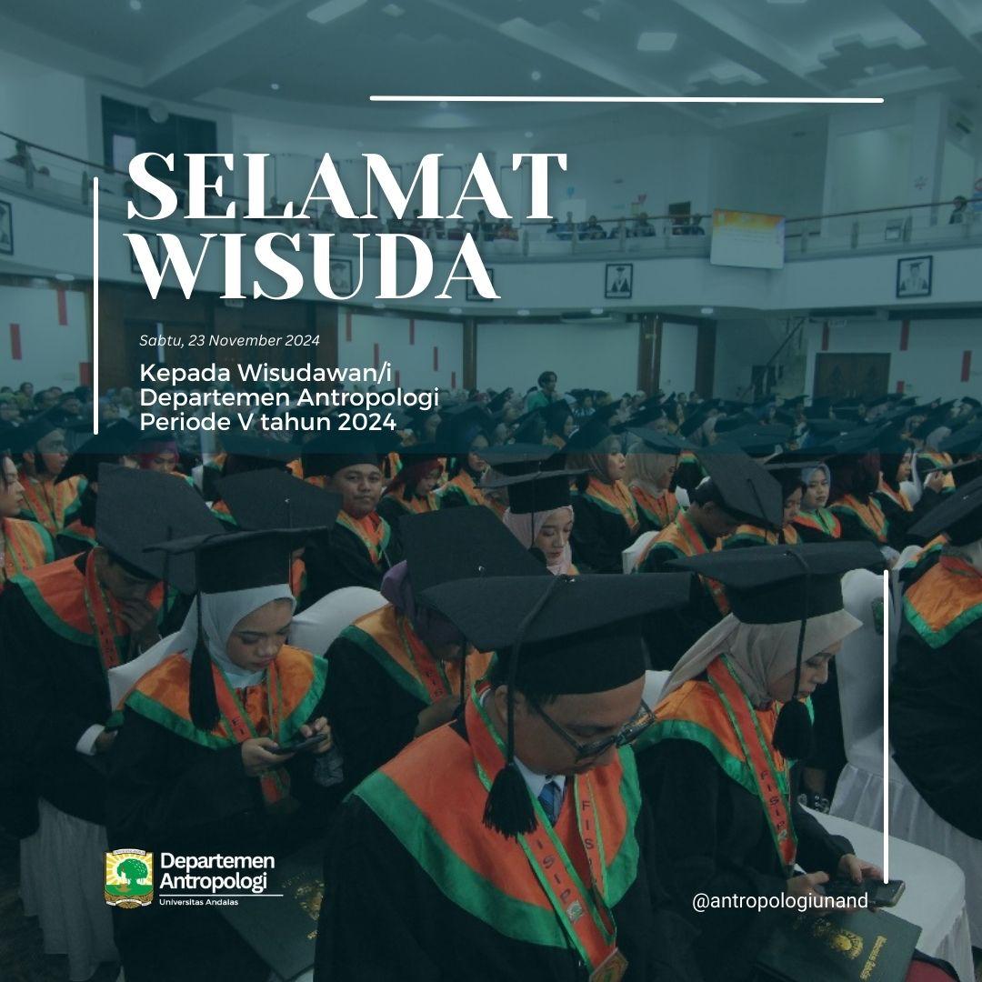 Pada tanggal 23 November 2024, Convention Hall Universitas Andalas (UNAND) menjadi tempat penyelenggaraan acara wisuda Fakultas Ilmu Sosial dan Ilmu Politik (FISIP) periode 5 tahun 2024. Acara ini dihadiri oleh berbagai pihak penting, termasuk Dekan Fakultas FISIP, Dr. Jendrius, M.Si, Wakil Dekan, Kepala Departemen, dosen, serta keluarga dan orang tua wisudawan. Di antara berbagai departemen yang ada, Departemen Antropologi Sosial mendapat perhatian khusus, dengan 15 wisudawan yang berhasil menyelesaikan studi mereka dan merayakan kelulusan dalam suasana yang penuh kebanggaan dan makna.