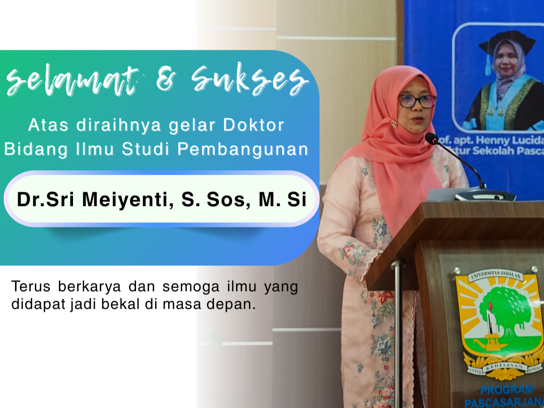 Selamat dan Sukses Atas Diraihnya Gelar Doktor oleh Ibu Dr. Sri Meiyenti, S.Sos., M.Si. dalam Bidang Ilmu Studi Pembangunan